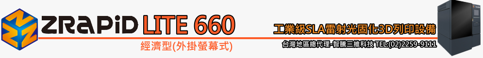 雷射光固化樹脂(SLA)是一種高速度、高精度的3D列印技術。使用紫外線雷射器和液態紫外光固化敏感樹脂來列印任何物件。控制雷射光束在樹脂液面上掃描,使樹脂液面固化形成掃描的零件橫截面層膜。固化一層後,在剛形成的層膜上再覆蓋一層液態樹脂,並繼續掃描,使之固化結合在之前固化形成的零件截面上。如此反覆,逐層增長,從而列印出完整的立體物件。ZRapid目前是全球與華人地區以SLA光固化3D打印設備研發製造領域的創新者。所使用的技術、工藝、方法正在成為業界的標準。
