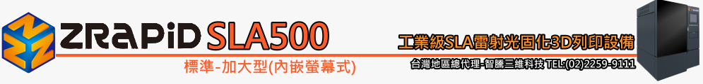 雷射光固化樹脂(SLA)是一種高速度、高精度的3D列印技術。使用紫外線雷射器和液態紫外光固化敏感樹脂來列印任何物件。控制雷射光束在樹脂液面上掃描,使樹脂液面固化形成掃描的零件橫截面層膜。固化一層後,在剛形成的層膜上再覆蓋一層液態樹脂,並繼續掃描,使之固化結合在之前固化形成的零件截面上。如此反覆,逐層增長,從而列印出完整的立體物件。ZRapid目前是全球與華人地區以SLA光固化3D打印設備研發製造領域的創新者。所使用的技術、工藝、方法正在成為業界的標準。