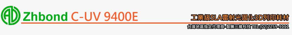 C-UV 9400E表面比較細膩,耐温45度,韌性和UV9400類似,是一種具備精確和耐久特性的類ABS的立體光造型樹脂。它被用於固態激光的光固化成型法。 C-UV 9400E可應用於於汽車,醫療,消費電子等工業領域的母模,概念模型,一般部件,功能性部件的製作。用C-UV 9400E樹脂製造的部件的耐久性長達6.5個月以上。